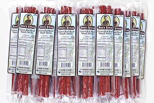 "All of the Goodness, None of the Garbage..." Nick's sticks are produced by Wenzel's Farm from 100% Grass-fed and finished Cows never given antibiotics or hormones. These delicious snack sticks are seasoned with Redmond Organic Seasoned Salt and are free of Nitrates, Nitrites, Gluten, and MSG. 12 packages each containing 2 sticks.