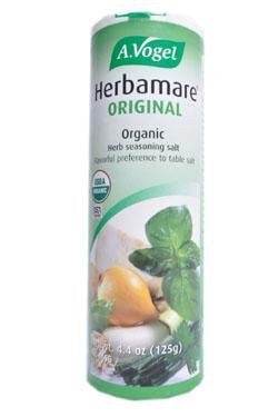 A. Vogel Original Organic Herb Herbamare Salt Herbamare® is made according to the original recipe of the world famous Swiss Naturopath Dr. A. Vogel and is prepared with fresh, organically grown herbs. The fresh herbs are combined with natural sea salt and allowed to "steep" for up to one year before the moisture is removed by a special vacuum process at low temperature. The Steeping process integrates the full herb and vegetable flavor into the salt crystal. Use Herbamare® on salads, vegetables, beans, and rice, pasta, meats or pizza for a delicious seasoned dish. Keep a container on your table as an alternative to plain table salt and in your condiment cupboard to create a delicious seasoning for all your home cooking. Herbamare® does not contain artificial flavorings, dairy products, gluten, anti-caking agents or hydrolyzed vegetable protein. Pioneer in Natural Health- Since 1923 Certified USDA Organic Product of France