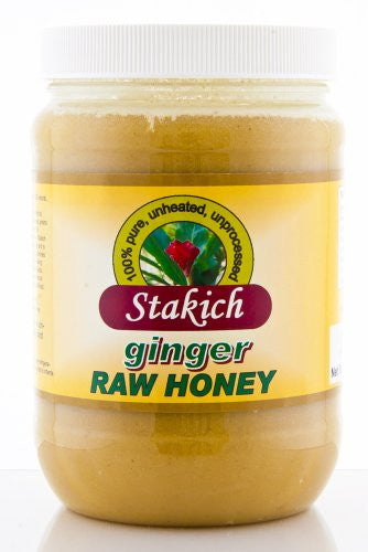 Stakich Ginger enriched Raw Honey consists of pure Kosher certified raw honey (39-oz) enriched with all natural ginger (30,000 mg). Stakich Ginger enriched Raw Honey is 100% all natural, unheated, unprocessed and unfiltered. We make every effort to ensure that all of its naturally occurring enzymes, amino acids, vitamins and minerals are fully preserved. Stakich Raw Honey has a distinctively rich taste and is highly prized for its flavor. The beehives are kept in unsprayed and pesticide-free fields in rural Michigan, allowing honey bees to collect only the finest nectar from wildflowers. Raw Honey is a remarkably long-lived food and will not spoil. Store honey at room temperature. Do not microwave or refrigerate. If honey crystalizes, place jar in warm water to liquefy. Kosher certified. Naturally cholesterol, sodium, gluten and fat free. About Stakich, Inc. Stakich Incorporated was started over 88 years ago with one goal: to help you live a healthy lifestyle with all natural, top quality products at a price you can afford. That mission has led us to strive for perfection with the products we sell and the excellent customer service we provide. Family owned and operated from the start, at Stakich Inc. we continuously look for ways to make you healthier by providing only the finest ingredients in all of the products we offer! Check out our additional Amazon listings for a variety of Enriched Raw Honey products, Bee Pollen, Royal Jelly, Beeswax, Chlorella, Lecithin, Spirulina, Ginseng, CoQ10, Skin Creams and over 500 Herbal Extracts.