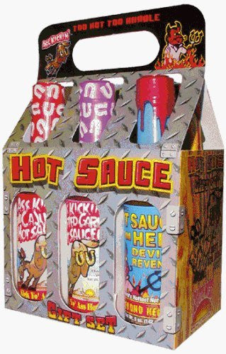 Gift for any Hot Sauce connoisseur. A fiery combination of 6 very flavorful gourmet sauces. Ass Kickin' Cajun, Ass Kickin' Roasted Garlic, Ass Kickin' Horseradish, Ass Kickin' Original, Original Hot Sauce From Hell and Hot Sauce From Hell Devils' Revenge!