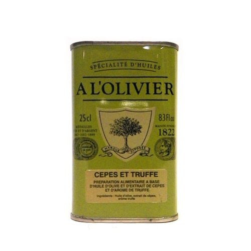 Our recipe: the aromatic components of the porcini mushroom are first transferred to the olive oil, then the truffle aroma is added (aroma developed for us by a Grassois artificial flavor chemist). The result is an extremely aromatic oil, ideal for flavoring risottos, tagliatelle dishes, white meat sauces and omelets as well as steamed potatoes, risotto or fresh pasta.