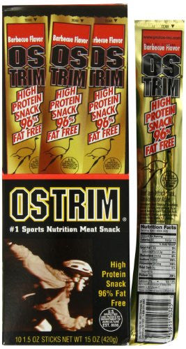 No 1 Sports Nutrition Meat Snack. High Protein Low Fat Snack Sticks. Nature's food protein. If you're looking for a great tasting, moist, real meat protein from nature eat Ostrim. Ostrim high-protein meat sticks are low in fat and USDA inspected, guaranteeing you a true and correct nutritional profile of quality and wholesomeness. Ostrim, nature's food protein, surpasses the protein sources found in many sports nutrition products. Start using Ostrim and compare for yourself. It will conveniently enhance your diet and your active lifestyle.