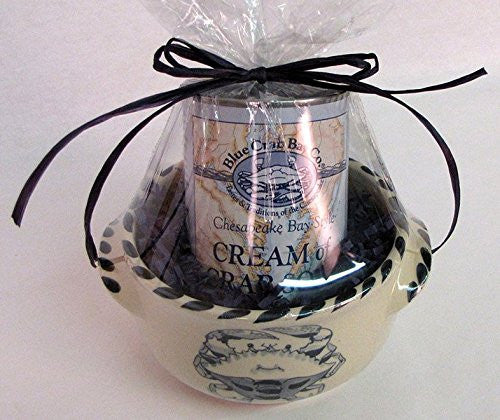 Our Cream of Crab Soup nestled in a Blue Crab stoneware soup/chowder bowl