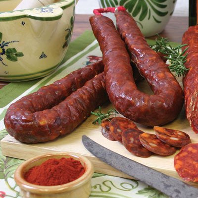 Authentic dry cured Spanish chorizo. Firm texture, slightly dry, and a mild taste.