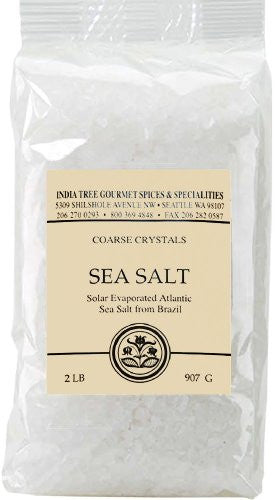 Solar Evaporated Atlantic Sea Salt from Brazil. India Tree Coarse Sea Salt is made from sea water captured in shallow ponds & allowed to evaporate naturally by means of sun & wind. It is especially clean because it is collected within an ecosystem that provides natural filtration & purification. It is perfect for your salt mill. India Tree Coarse Sea Salt from Brazil is rich in minerals and more savory that ordinary table salt. Remember, when it comes to sea salt, less is more.