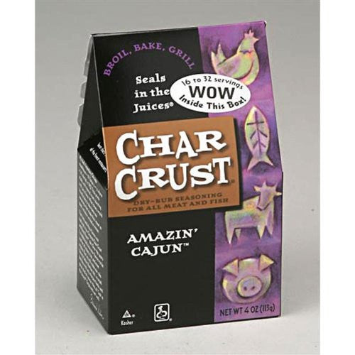 Char Crust Amazin' Cajun Rub 4 oz.Give your catfish, chicken, or shrimp a kick of Cajun flavor with the Char Crust Amazin' Cajun Rub. This rub features spicy and sweet tastes from a blend of cayenne pepper, onion, garlic, and oregano. Char Crust dry rub is easy and fast to use! Simply dredge, sear, and serve. Use on any meat, seafood, or vegetable, and just broil, bake, grill, or even saute. Features:Kosher Spicy Sweet Cayenne pepper Onion Garlic Oregano