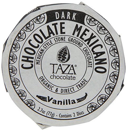 Taza Organic Vanilla Chocolate Mexicano Disc, 2.7 Ounce -- 12 per case. Whole organic vanilla pods from Villa Vanilla Spice Plantation in Costa Rica are ground together with single-origin Dominican cacao in vintage Oaxacan stone mills to make this sweet, fragrant chocolate. Stone grinding preserves the bright flavors of our premium ingredients and leaves an addictive rustic textures in the finished discs. This product is certified USDA Organic, Direct Trade, Gluten Free and Kosher Pareve, and Non-GMO Project Verified. It is also dairy free, soy free, and vegan. 95 Percent Organic, Vegan, Gluten Free, Wheat Free, Dairy Free