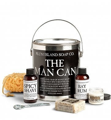 The Man Can's masculine presentation and quality skin care products designed just for men, make this gift one of our best sellers for the guy in your life. Created by soap-making specialists of the Plum Island Soap Company in Massachusetts, these spa products are designed to soothe and rejuvenate the manliest of skin. The Man Can includes: Licorice Fisherman's Scrub Soap Heavy-Duty Hand Butter Spicy Shave Gel Bay Rum Oil Aftershave and a Body Sponge Measures 7.5" x 6.5" x 6.5". What's Inside: -[b] A creamy, licorice scented soap with anise oil and black poppy seeds to exfoliate the skin. Poured and cut by hand on a small island in northern Massachusetts.[br] -[b]Spicy Shave Gel[/b] 4 oz.: This spiced gel promises the perfect shave, simply combine with a dab of water and work into a rich, foamy lather. [br] -[b]Bay Rum Oil[/b] 4oz.: A wonderful Bay Rum scented moisturizing body oil for after a shave or shower.[br] -[b]Fisherman's Hand Butter[/b]: A 100% natural, heavy duty, extra rich creme made with pure olive and essential oils, beeswax, and glycerine.[br] -[b]Body Sponge[/b]: A texture body sponge on a rope.[br] -[b]Can with Opener[/b]: Reusable paint can with bottle opener.[br]Fisherman's Scrub Soap[/b] 3 oz. Search "Gift Baskets from Green Team Warehouse" on Amazon for more gifts! (1) One Men's Birthday Gift Basket.