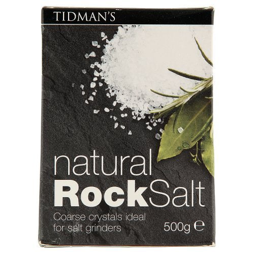 Tidman's natural rock salt. Coarse crystals ideal for salt grinders. Bring out the flavor of your food with pure white rock salt crystals of superior quality. Prepared without artificial additives, it is extracted from ancient rock deposits. Rock salt is a natural seasoning containing important minerals essential for a healthy diet. For centuries it has been used to preserve and improve the taste and texture of food. While we try to ensure that product information is correct, on occasion manufacturers may alter their ingredient lists. Please note actual image may vary. Information on this site is not intended to diagnose or treat any health condition. We recommend that if you are pregnant, nursing, have a medical condition or are currently taking medication that you seek advice from a health professional before you take any dietary supplement. Always read the product directions before use and do not exceed the recommended intake. Food supplements should not be taken as an alternative to a balanced diet. Keep out of reach of children.
