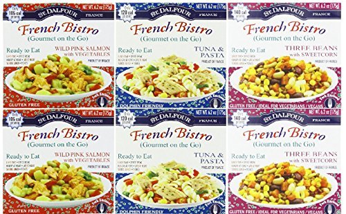 Ready to Eat, Gourmet to Go meals contain only the freshest of ingredients, no added preservatives, msg, nitrates, colours or artificial ingredients, containing less that 1% of saturated fat. Tuna :tuna, sliced carrots, flat green beans, red peppers, potatoes, sweetcorn, celery , cooked fusilli pasta (wheat, eggs), onions, peas, olive oil, sunflower oil, salt, mustard, basil, thickeners (xanthan and guar gums) Wild Salmon:salmon, potatoes, sliced carrots, flageolet beans, red peppers, green peppers, celery, sunflower oil, mustard, salt, dill, garlic, white pepper, paprika, thickeners (xanthan and guar gums) Three Bean & Corn :diced carrots, sweetcorn, lentils, cannellini beans, kidney beans, onions, flageolet beans, sunflower oil, olive oil, salt, mustard, garlic, tarragon, thickener (xanthan and guar gums) Serving Size 2/5 cup (100g) Servings Per Container per can 2 Amount Per serving Calories 140Calories From Fat45 % Daily Value* Total Fat 0g0% Saturated Fat 1g5% Trans Fat 0g Cholesterol 0mg0% Sodium 265mg11% Total Carbohydrate 18g6% Dietary Fiber 7gN/A Sugars 0g Protein 5g Vitamin A 0%Vitamin C 0% * Calcium 4%Iron 6% * *Percent daily values are based on a 2,000 calories diet. Your daily values may be higher or lower depending on your calorie needs