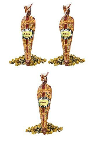 Popcornopolis zebra chocolate popcorn pack contains three 11-ounce cones of our famous zebra chocolate popcorn, a taste sensation that is so glorious it’s been featured on the food network. Our golden-brown caramel corn is transformed into a chocoholic’s dream with decadent stripes of rich dark chocolate and velvety white chocolate. Popcornopolis zebra chocolate popcorn is MSG, gluten, and trans-fat free. Each flavor is packaged in our ingenious popcornopolis cone, made with the same material that keeps the astronauts’ food fresh and nutritious. Even after the cone is opened, just reseal it with its twist-tie to keep your popcorn light and crunchy for months.