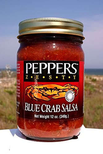 Peppers Blue Crab Zesty Salsa - Enjoy the bounty of the Chesapeake Bay! The sweet flavor of the Blue Crab combined with fresh ripe vegetables and zesty horseradish makes for an exquisite salsa. Use it as a dip or to enhance seafood dishes, omelets, salads & grilled meats. This National Champion Salsa was seen on "Roker on the Road" on the Food Network in 2004. Made especially for: Peppers in Lewes, Delaware. Ingredients: Diced tomatoes, Blue crab meat, roasted Chilies, horseradish, Chili peppers, diced Green Bell peppers, lime juice, Worcestershire sauce, Jalapeño peppers, a special blend of herbs & spices, salt.