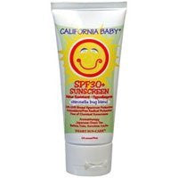 California Baby SPF30+ Sunscreen Lotion, Natural Bug Blend designed for babies, kids and adults with sensitive skin.