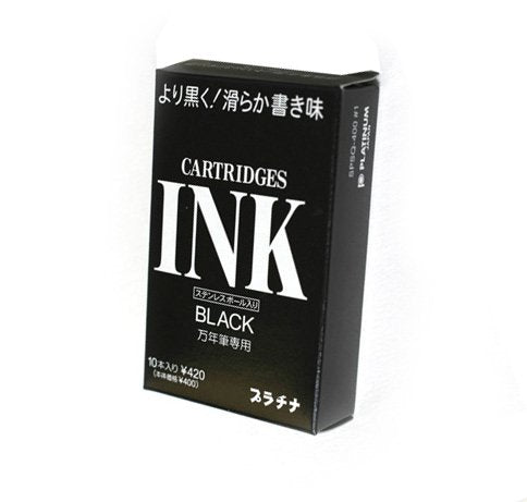 Black 10 pack of fountain pen cartridges for Platinum Plaisir fountain pens.