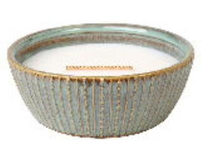 FIRESIDE FRENCH KNOT MEDIUM PREMIUM HearthWick Flame Scented Candle by WoodWick features a beautiful knotted texture with soft striped tones to inspire and illuminate any room.