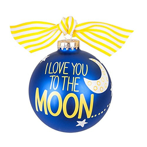 Remind someone how much they are loved with our I love you to the moon and back glass ornament. Each ornament is perfectly packaged with a matching gift box and coordinating tied ribbon for easy gift giving and safe storage.