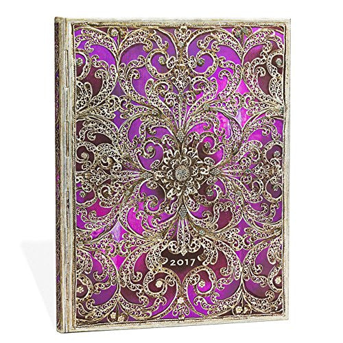 2017 Paperblanks Ultra Weekly Calendar, Vertical format - the desk planner of choice for professionals, executives and the busiest of us all. Paperblanks ultra dayplanners are the ultimate appointment book with classic antique leather looks, amazing embellished touches, and opulents prints from around the world. Each weekly planner measures 7" x 9" with 160 pages, 2017 monthly planner pages, dual satin ribbon place markers, convenient memento pouch, removable address book, lined notespages, travel planning & important date memo page, international holidays for 2017, useful telephone numbers & websites, international dialling codes & emergency numbers, clothing sizes, measurements & temperature conversion tables, world time zone chart, year planner for 2018, holidays & celebrations for 2018.