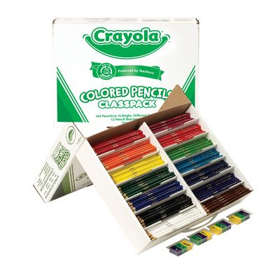 BAS130 Features: -Class packs include 12 Pencil sharpeners. -Made with thick, soft leads so they won't break easily under pressure. -Pre sharpened. -Non toxic. -Set of 240 Colored pencils in 12 Colors. -Category: Drawing. Product Type: -Colored Pencils. Country of Manufacture: -United States. Dimensions: Overall Height - Top to Bottom: -1.63". Overall Width - Side to Side: -10". Overall Depth - Front to Back: -15". Overall Product Weight: -3.04 lbs.