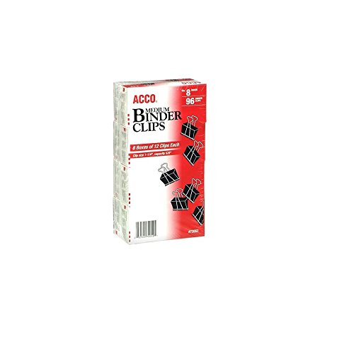 ACCO Medium Size Binder Clips - 1 p1/4'' Width. 5/8'' Capacity - 12 per Box - 8 Boxes (96 Total).