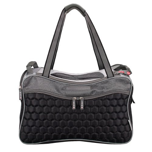 The Petagon by ARGO was designed especially for all the canine-loving pet fashionistas who travel with their furry friends everywhere, whether it's taking your furry friend for a day out in the city or going away on vacation. The Petagon is Airline Approved and meets TSA requirements for pet carriers in passenger cabins. The Petagon fits perfectly underneath an airline passenger seat. The Petagon is made with ultra light weight plush diamond quilting material; with 5 external zipper pockets for easy organization and storage; it has a double zipper top for easy entry; made with dual layer mesh windows for reinforcement and providing great ventilation; it has a smart strap for car seat belt to slide through; comes with a removable water-resistant cool padding for quick cleaning. The Petagon is recommended for pets up to 22 LBS.