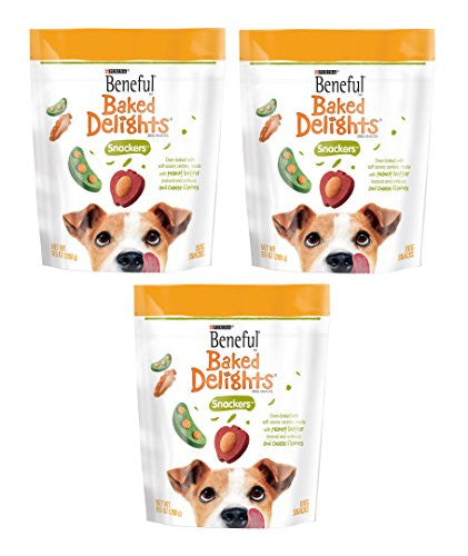 Purina Beneful Baked Delights Dog Treats in Snackers Variety (9.5 OZ Each). Pack of 3 per quantity ordered.