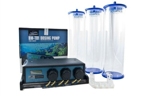 Package Includes: Bubble Magus T-01 Doser, Three 1.5L Dosing Containers, 1 Bubble Magus Tube Holder, 1 Bubble Magus Bracket(Holds Doser). Size : 23.5 x 16 x7 cm. Accuracy +- 5%. Voltage :AC100-240V 50/60Hz 0.36A DC12V 1A (US Pin). 3M Dosing Tube included. Dosing Pump Bracket and BM Bracket Holder for BM-T01 Dosing Pump Are Sold Separately. Flow :1 - 1999ML Cycle : Max :24 cycle per day