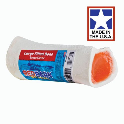 Want to give your dog a tasty treat and keep him occupied for a while? RedBarn Filled Bones are just what your dog is craving: An all-natural white femur bone, perfect for healthy chewing, stuffed with a delectable bacon flavored filling that will drive your dog wild. Healthy and absolutely delicious. Going away for a few hours? Your dog won't mind if he's got a RedBarn Filled Bone to occupy his time. For help choosing the proper treat for your dog, please read our article Choosing Dog Treats
