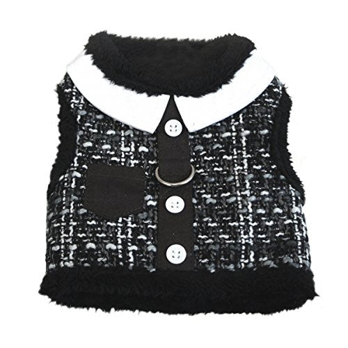 The Grey Tweed and Minky Plush Pocket Harness & matching Leash is Super Soft and Warm. The New Tweed Winter Harness features Classic Styling, and is Made with High End Tweed Fabric and Lined with Thick and Soft Minky Plush Fur. Featuring a real Mini Pocket, Buttons and White Collar. Harness Comes with Matching Leash and D-Ring attachment. Shown in COlor Grey Tweed. Size Small Shown in Size: Medium (Chest 16-19" Pet Weight 11-16lbs).