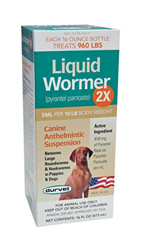 Double strength liquid wormer that effectively removes large roundworms and hookworms from puppies, adult dogs and lactating dogs. Safe to use on puppies as young as two weeks.