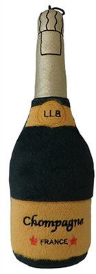 It is party time for your pet when you give it this plush chompagne toy. This whimsical toy resembles a bottle of champagne with the word Chompagne embroidered on it. The hilarious toy has a hidden squeaker inside so your dog's fun will last must longer than you originally thought. Able to withstand lots of keen chewing, the chompagne dog toy is made with an extra layer of durable mesh on the inside as well as strongly stitched seams. Small and large sizes of the plush chompagne can be served so that all pooches are satisfied. Small measures approx. 2.5" x 2.5" x 7" and Large is approx. 3" x 3" x 11"