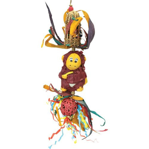 Our Foraging Friends Monkey provides birds with Natural FUN Chewing outlets. Our adorable Monkey Pinata can be filled with a treat. There are Yummy Wooden Banans, a wicker cage stuffed with coconut fiber, crunchy corn husks and a wicker ball stuffed with colorful confetti. This is a great Boredom-