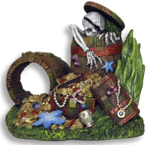 Exotic Environments Skeleton Barrel Bubbler Ornament is made with durable poly resin material safe for use in all aquariums. Hand painted detail, 5-Inch by 3-3/4-Inch by 4-Inch tall