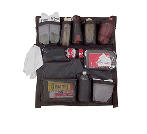 The ultimate tool for organizing your barn or trailer. Different sized pockets maximize convenience and optimize space. Items stay in pockets due to the special square bottom design. The unique removable zippered pocket is great for show and health papers during check-in. Zippered pocket for rubberbands, tubes, and small items. Insulated bottle holder, separate holders for small jars, hoof pick, scraper, and vet wrap. Large D-ring for a towel. Mounting hardware included with double S closure for added security when hanging.