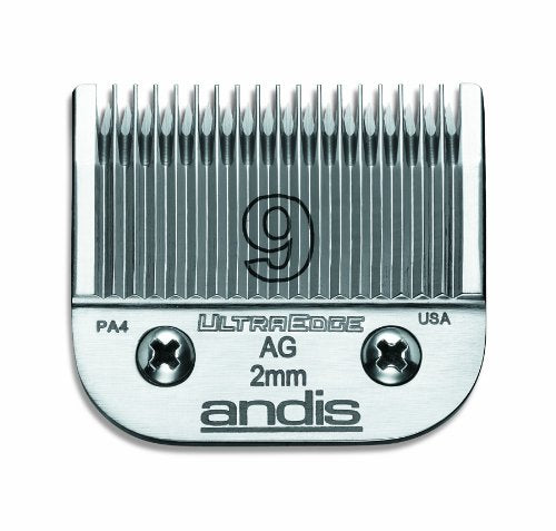 This UltraEdge clipper blade is made from high-carbon steel and processed through a unique carborizing heat treatment that actually adds carbon to the metal. More carbon on the metal means a harder cutting surface. Blades hold a razor sharp edge that will endure prolonged use and more sharpening treatments. Use on terrier, springer and schnauzer backs. This blade leaves a lovely finish on the crown of the head and the arch of the neck of a cocker spaniel. Blade sets should be oiled once a day minimum! Ideally, it should be done before every grooming. After oiling, be sure to use a soft, dry cloth to wipe any oil off the external surfaces to reduce the possibility of getting it on the animal's coat. If the clipper blades leave streaks or slow down, it's a sure sign that the blades need oil. Oiling Blades - Place a few drops of blade oil on the front and side of the cutter blades. Wipe excess oil off blades with a soft, dry cloth. Spray lubricants contain insufficient oil for good lubrication, but are an excellent clipper blade coolant. Cleaning Blades - Immerse blades only while clipper is running in a shallow pan of clipper oil or blade cleaner. After cleaning, turn the clipper off and dry blades with a clean, dry cloth. If blades will still not cut, there may still be some hair trapped between the upper and lower blade. Remove the blade off the clipper and slide the upper blade to one side without loosening the tension spring or moving the upper blade completely out from under the tension spring. Wipe the surfaces of the blades clean with a dry cloth, then place a drop of clipper oil where the upper and lower blades meet and also in the guide slot of the tension spring. Comes in size-9 and 5/64-inch cut length. Measures 4-4/5-inch length by 3-1/2-inch width by 1-1/2-inch height.