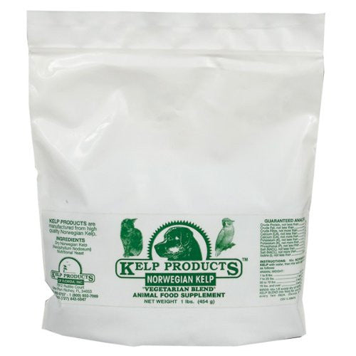 Kelp products are manufactured from high quality Norwegian Kelp. Norwegian Kelp helps reduce stress, dry skin and allergies, shedding and improves the condition of the coat or feathers. Also reduces pain from arthritis. It helps restore pigmentation. Helps balance the thyroid and aids in digestion. Great tasting. 100% all natural and organic. Mix Norwegian Kelp with water, then mix with daily food as follows: Directions: 1 to 6 pounds - 1/2 scoop, 7 to 25 pounds - 1 scoop, 30 to 70 pounds - 2 scoops, 75 pounds+ - 3 scoops. For birds mix 1/8 scoop into feed every two days.