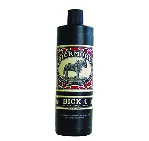 Brand New. Bickmore Bick 4 Leather Conditioner 16 oz Conditions, Cleans, and Polishes Leathers Stops drying and cracking Keep leather looking new Protects from weathering conditions Forms a water resistant barrier Bick 4 Leather Conditioner accomplishes four important jobs. It conditions, cleans, polishes, and acts as a stain repellent, making it ideal for keeping leather soft while preventing the leather from drying and cracking. It is effective on all smooth, finished leathers, including exotics. Unlike other brands, Bick 4 is a wax-free product that will not seal pores of leather thereby affecting breath-ability. Bick 4 will not darken any color-cast leather or deteriorate the stitching.
