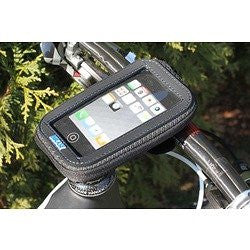 Fits Iphone (TM), Iphone (TM) in an average-sized case, Androids (TM) such as Motorola Bionic (TM) & Motorola Razor (TM), Samsung Galaxy (TM) and many more. Easily mounts to bike with two neoprene velcro straps. Simply wrap the straps around your handlebars, the stem, top tube, or even your backpack for easy access to your smart phone while riding. No tools required for this easy set up! This cell phone pouch makes calling or navigating with a GPS or training app simple. The see through window allows you to view information while keeping your phone or device protected with easy operation of the touch screen while in the pouch. Includes removable pad for those really thick phones.