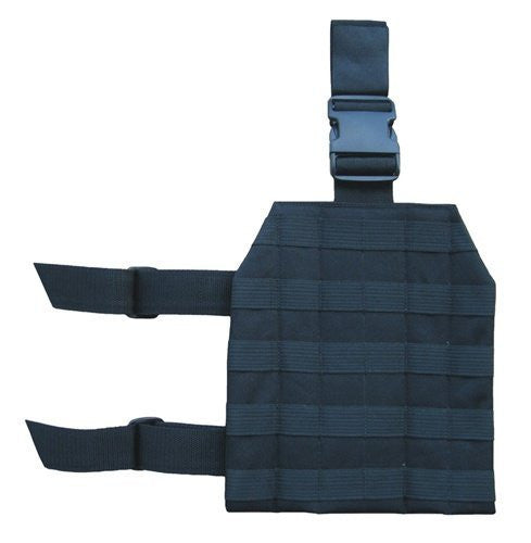 Manufacturer: TAIGEAR. MOLLE Drop Leg Platform. Accepts TG3xx Series MOLLE Web Accessories. Fully adjustable and removable leg straps. Double rows of non-skid rubber. One size fits all. Dimensions: 10" x 8".