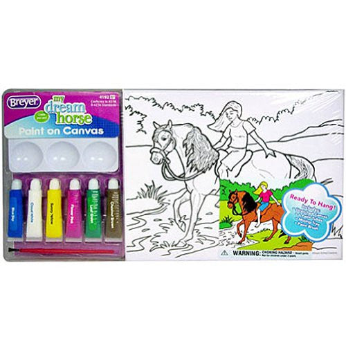 Kids will love painting the pre-drawn girl and horse illustration on this canvas! Includes: one pre-drawn canvas, paint brush, six tubes of paint and pallet.