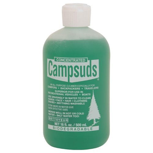 Campsuds is known and trusted as the finest product of its kind. Biodegradable all-purpose product cleans everything fromhands and face to dishes and clothing, while rinsing quickly and cleanly. Works well in hot, cold, hard or soft water. .