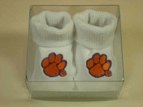 Clemson Tigers Boxed Baby Booties (NB - 3 Months, White)