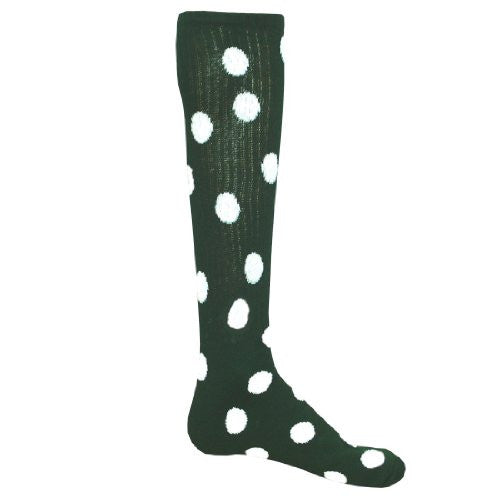 Red Lion Women's Polka Dot Socks Here's a fastpitch sock with the fashion look. It's made of 71% acrylic, 21% nylon, 7% polyester, 1% spandex. Fits female shoe size 5-10. Colors: Black/Neon, Black/Pink, Purple/White, Green/White, Gold/Black, Pink/White, White/Royal, White/Red.