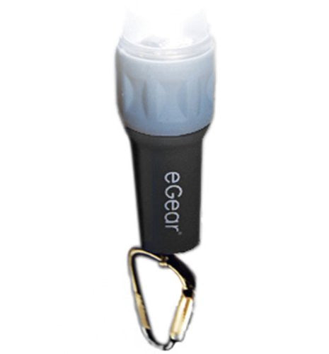 Waterproof and submersible this flashlight has a textured lens which produces broad, soft illumination. The rubberized grip is shaped for easy one handed operation with the textured bezel being very easy to grasp and turn. Includes a carbiner for easy attachment to your back pack, vest, tent, or wherever else you might find convenient. A single, included AAA battery is all it takes to get almost 12 hours of steady light and 16 hours of flashing SOS signal from this great light . Handy and practical!