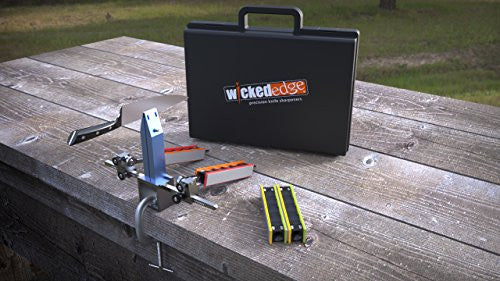 The Field & Sport Precision Knife Sharpener is a portable version of the Wicked Edge with the Pro-Pack II hardware, a precision engineered, manual sharpening machine. It was designed with very exacting standards to consistently deliver an incredible, razor sharp edge. While the results are excellent, it is easy to use and does not require special knowledge or skills to use.