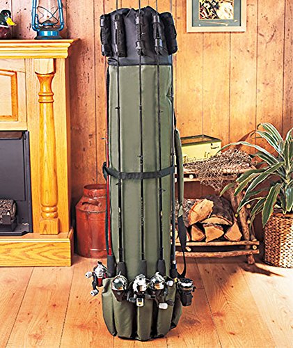 This Fishing Rod Case is a must-have organizer for anyone who loves to fish. The case holds 5 rods on the outside, plus more rods and equipment on the inside. The exterior features pockets on the bottom and padded straps with fabric-magic at the top to secure and protect the 5 rods. The rod case also features a quick fastener strap that secures gear during transport. A zipper on the side provides easy access to the large inner storage compartment. Also has a huge exterior pocket with fastener for banksticks and essentials, plus a padded adjustable shoulder strap and carrying handle. Made of polyester, it measures 49" x 8-5/8" dia.