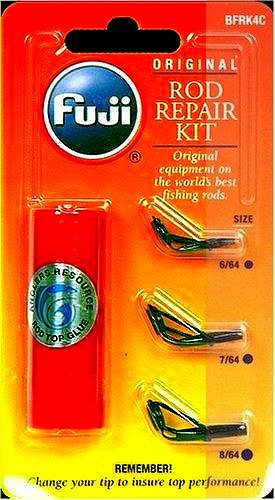 The Fuji SBFRK4C Saltwater Rod Prepare Kit, Black, Large. Repairs most fishing rod tips. The kit contains (3) of the most widely used tips as well as a tube of hot melt glue.