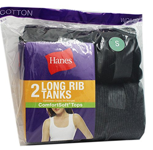Hanes Women's Long Rib Tank Black 2-Pack S