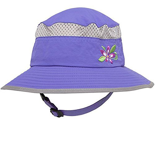 This Sunday Afternoon Iris Purple Flower Kid's Fun Bucket Sun Hat is the best investment you can make in sun protective wear for your children or grandchildren! Kids love to wear them, and parents and grandparents love knowing their little ones are staying safely sun protected during their critical childhood years. This best-selling kids' sun hat offers unique sun protective features such as UPF 50+ certified sun rating fabric and a 2.5"-4" down sloping brim with floatable foam core (brim length depends on size) making it a hit everywhere the sun shines. This hat also features strategic mesh ventilation on Child and Youth sizes, SmartStrap breakaway chinstrap technology, water repellent and stain resistant fabric, stroller friendly wearability, and external sizing band for a custom fit. Best of all, this hat packs flat or rolls into a cone for travel! Available in sizes Infant (0-6 Months) & Child (2-5 years).