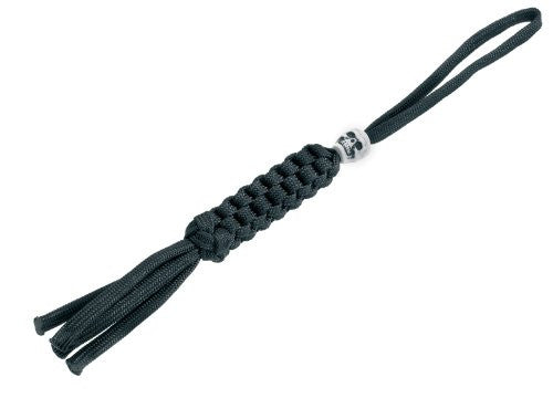Helps in drawing any folder or fixed blade knife, gives extra grip to any zipper, works as a grip extension for smaller knives or flashlights, personalizes your gear. Black/black with skull bead