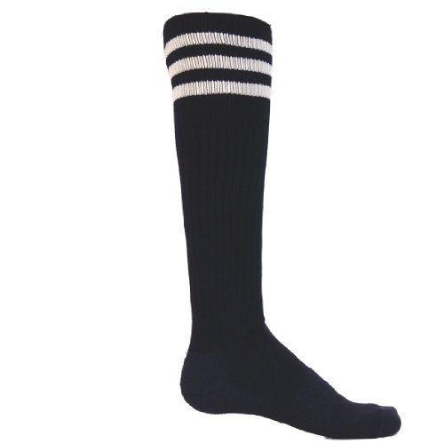 Three Striped Stretch Nylon Athletic Sock. Small fits a youth shoe size of 12-4, Ladie's shoe size of 4-5. Medium fits a Ladie's shoe size of 5-10, Men's shoe size of 4.5-8.5. Large fits a Ladie's shoe size of 11-12, Men's shoe size of 9-12.5.